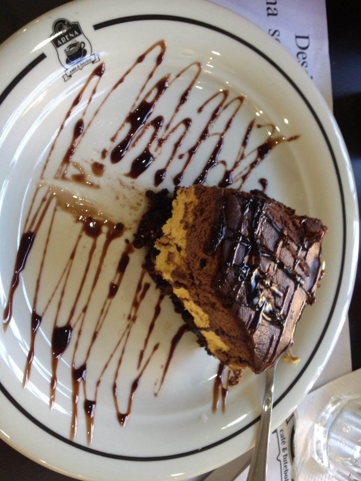 Rodrigo escolheu o Brownie com sorvete e calda de chocolate (brownie aquecido de chocolate preto ou chocolate branco, sorvete, calda quente de chocolate e cobertura de chocolate), que custou R$13,90.